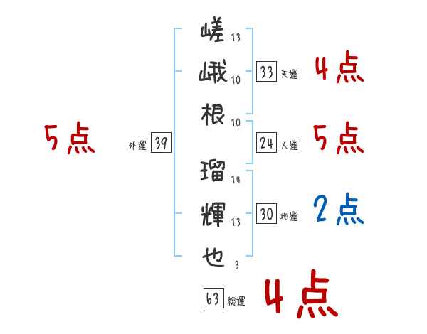 嵯峨根瑠輝也さんの画数の鑑定結果