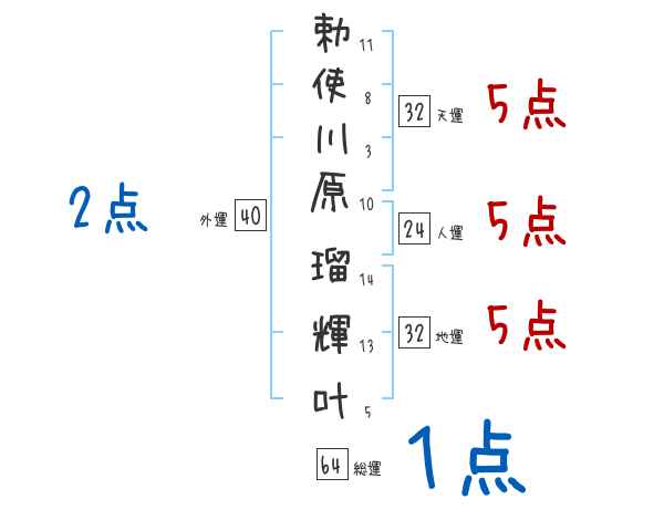 勅使川原瑠輝叶さんの画数の鑑定結果