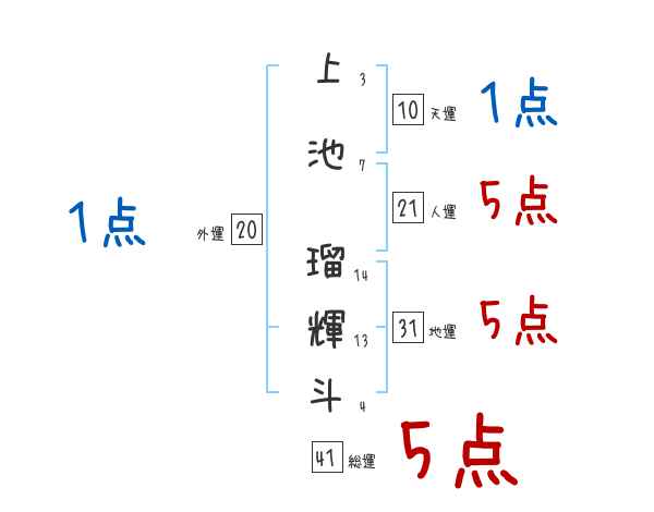 天運![]() | 上池瑠輝斗さんの天運は10画の1つ星!不安を感じやすい傾向。ストレスを抱えないように注意しましょう。 家系が持つ宿命的な運勢を表します。祖先から受け継いだ苗字ですので自分の力が及びません。家柄を象徴します。 |
