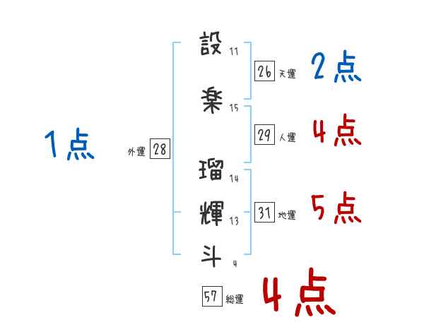 設楽瑠輝斗さんの画数の鑑定結果