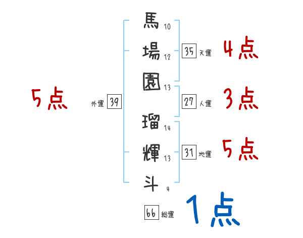 馬場園瑠輝斗さんの画数の鑑定結果