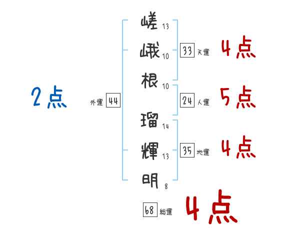 嵯峨根瑠輝明さんの画数の鑑定結果
