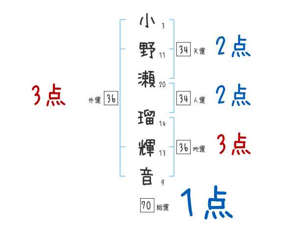 小野瀬瑠輝音さんの総運は70画の1つ星
