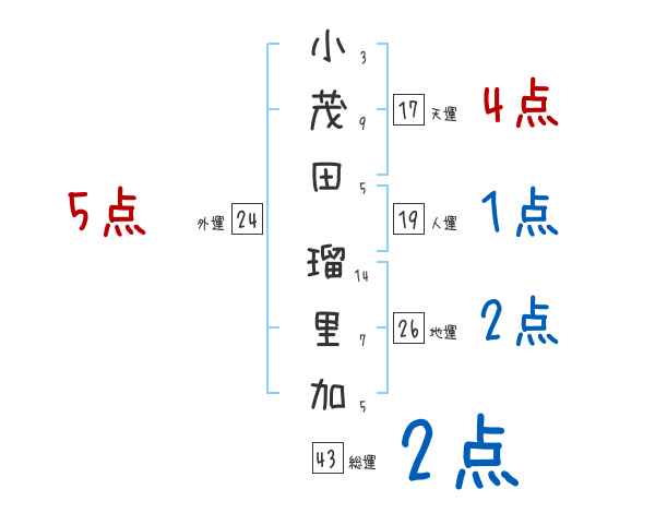 小茂田瑠里加さんの画数の鑑定結果