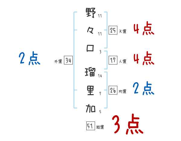野々口瑠里加さんの画数の鑑定結果
