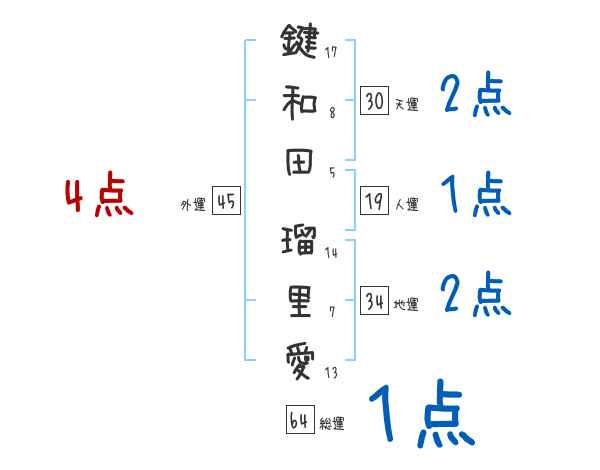 鍵和田瑠里愛さんの画数の鑑定結果