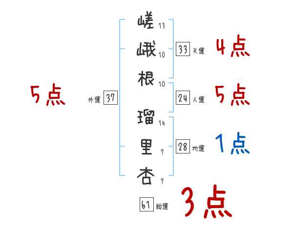 嵯峨根瑠里杏さんの画数の鑑定結果