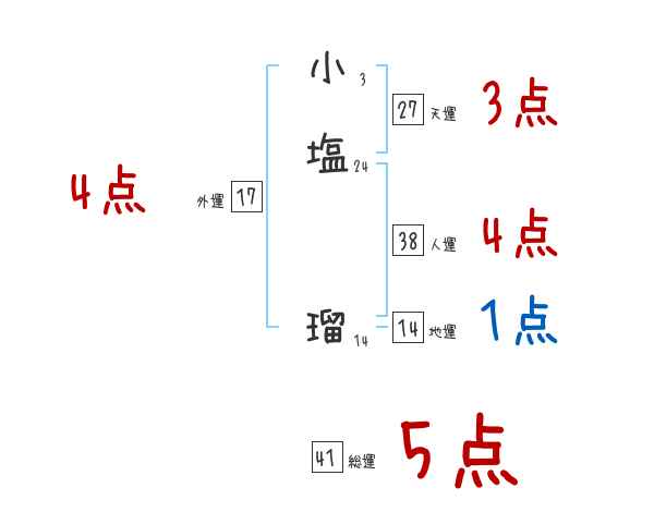 小塩瑠さんの画数の鑑定結果
