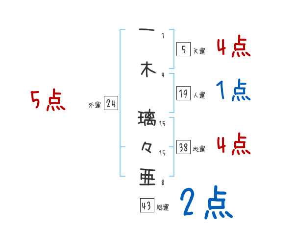 天運![]() | 一木璃々亜さんの天運は5画の4つ星!健康で安泰。協調性に優れ、財産に恵まれる。 家系が持つ宿命的な運勢を表します。祖先から受け継いだ苗字ですので自分の力が及びません。家柄を象徴します。 |