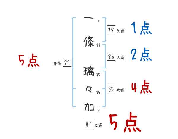 一條璃々加さんの画数の鑑定結果