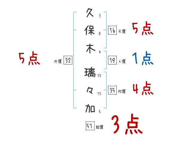 久保木璃々加さんの画数の鑑定結果
