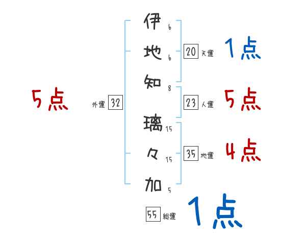 伊地知璃々加さんの画数の鑑定結果