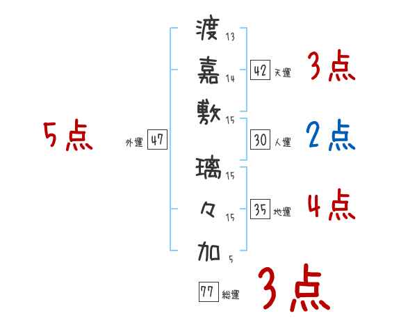 総運![]() | 渡嘉敷璃々加さんの総運は77画の3つ星!多少不安定であるが晩年は吉。不屈の精神。 あなたの人生を表す1番重要な運勢です。生涯を通じて影響する総合運となり、主に50歳以降の晩年期に影響を及ぼします。 |