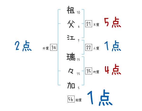 天運![]() | 祖父江璃々加さんの天運は21画の5つ星!統率力がある。独立し成功する。名誉を手に入れる。 家系が持つ宿命的な運勢を表します。祖先から受け継いだ苗字ですので自分の力が及びません。家柄を象徴します。 |
