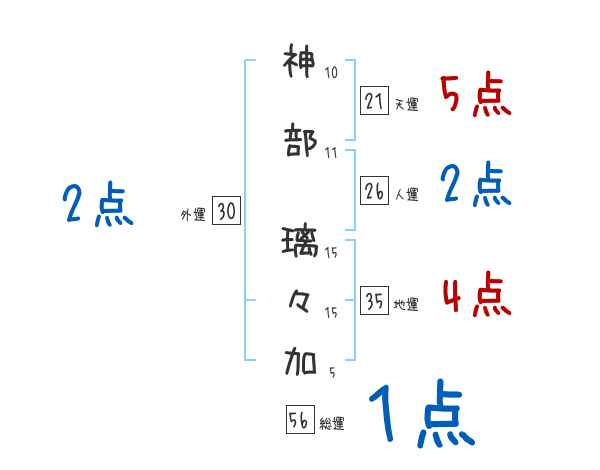 天運![]() | 神部璃々加さんの天運は21画の5つ星!統率力がある。独立し成功する。名誉を手に入れる。 家系が持つ宿命的な運勢を表します。祖先から受け継いだ苗字ですので自分の力が及びません。家柄を象徴します。 |