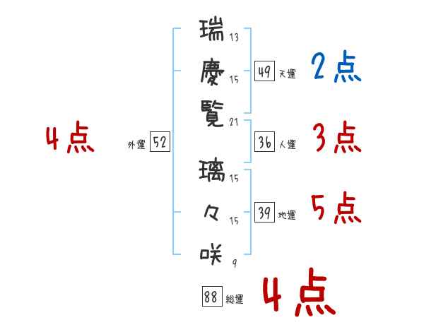 瑞慶覧璃々咲さんの総運は88画の4つ星
