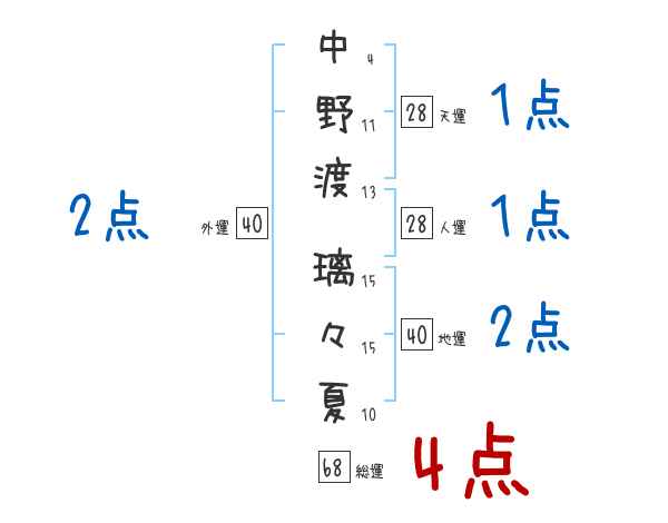 中野渡璃々夏さんの画数の鑑定結果