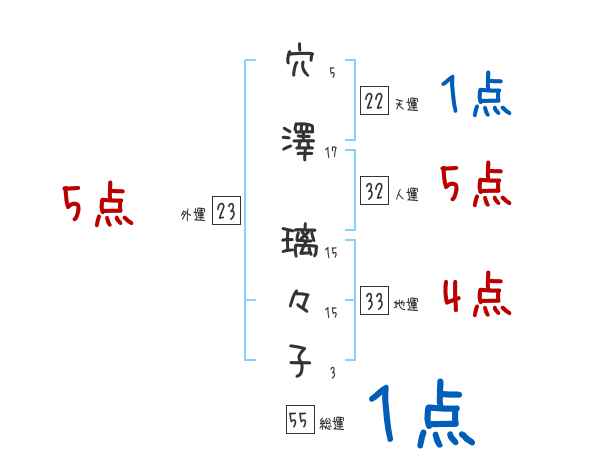 穴澤璃々子さんの画数の鑑定結果