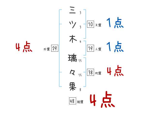 三ツ木璃々果さんの画数の鑑定結果