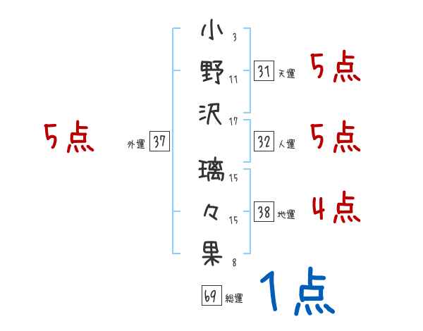 小野沢璃々果さんの画数の鑑定結果