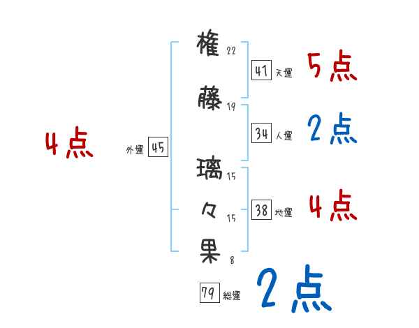 総運![]() | 権藤璃々果さんの総運は79画の2つ星!消極的な性格で不振に終わることが多い。不安定にならないように気をつけましょう。 あなたの人生を表す1番重要な運勢です。生涯を通じて影響する総合運となり、主に50歳以降の晩年期に影響を及ぼします。 |