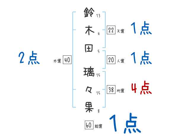 鈴木田璃々果さんの画数の鑑定結果
