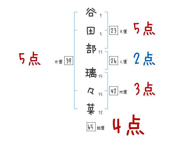 外運![]() | 谷田部璃々菜さんの外運は39画の5つ星!社交性に優れ人望が厚い。人の上に立ち成功する。 生活面を象徴する運勢です。外部から受ける影響力を表し、結婚運、家庭運や職場、環境への順応性を表します。 |