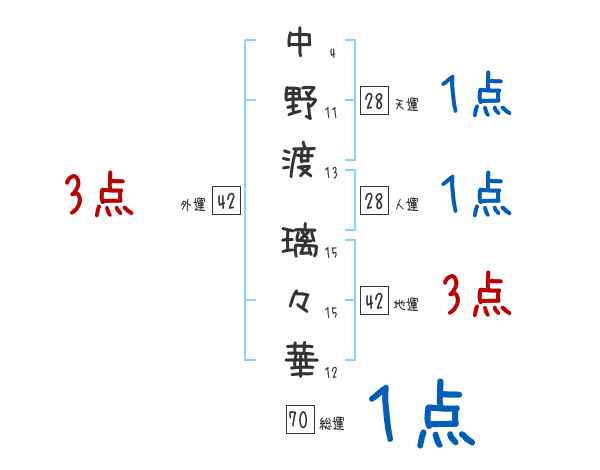 中野渡璃々華さんの画数の鑑定結果