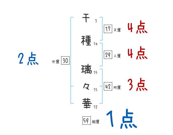 人運![]() | 千種璃々華さんの人運は29画の4つ星!完全主義で才能がある。厳格な心の持ち主。 性格や才能などを表す2番目に重要な運勢です。人間関係や協調性、社会的な成功に影響します。主に20歳から50歳ぐらいまでの中年期の運勢を表します。 |