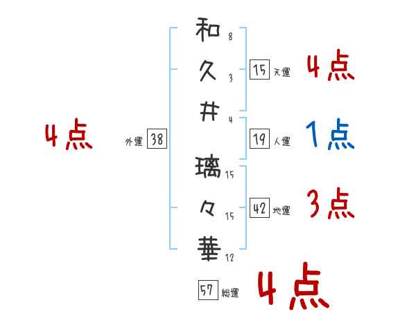 総運![]() | 和久井璃々華さんの総運は57画の4つ星!向上心があり人望がある。地位を得る。 あなたの人生を表す1番重要な運勢です。生涯を通じて影響する総合運となり、主に50歳以降の晩年期に影響を及ぼします。 |