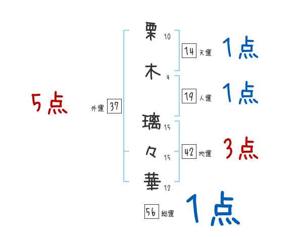 外運![]() | 栗木璃々華さんの外運は37画の5つ星!努力家で順応性に優れる。現実的な考え方ができ忠実に物事をこなす。 生活面を象徴する運勢です。外部から受ける影響力を表し、結婚運、家庭運や職場、環境への順応性を表します。 |