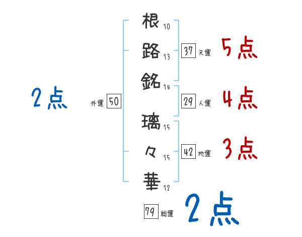 外運![]() | 根路銘璃々華さんの外運は50画の2つ星!浮き沈みが激しく不安定。しりすぼみに衰退しやすいので注意しましょう。 生活面を象徴する運勢です。外部から受ける影響力を表し、結婚運、家庭運や職場、環境への順応性を表します。 |