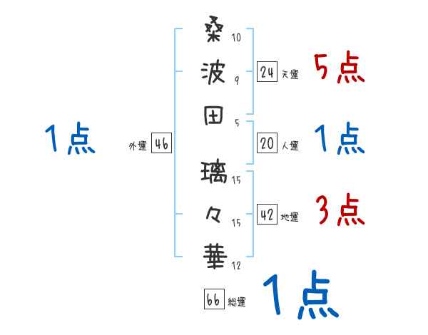 天運![]() | 桑波田璃々華さんの天運は24画の5つ星!家庭運が良く順調な人生。金運にも恵まれる。 家系が持つ宿命的な運勢を表します。祖先から受け継いだ苗字ですので自分の力が及びません。家柄を象徴します。 |