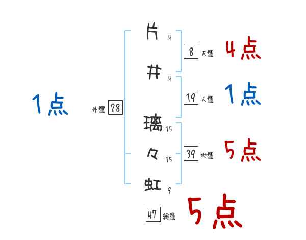 総運![]() | 片井璃々虹さんの総運は47画の5つ星!実力が開花し発展する円満な人生。財に恵まれる。 あなたの人生を表す1番重要な運勢です。生涯を通じて影響する総合運となり、主に50歳以降の晩年期に影響を及ぼします。 |