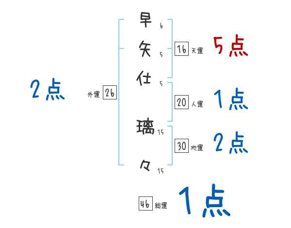 早矢仕璃々さんの画数の鑑定結果