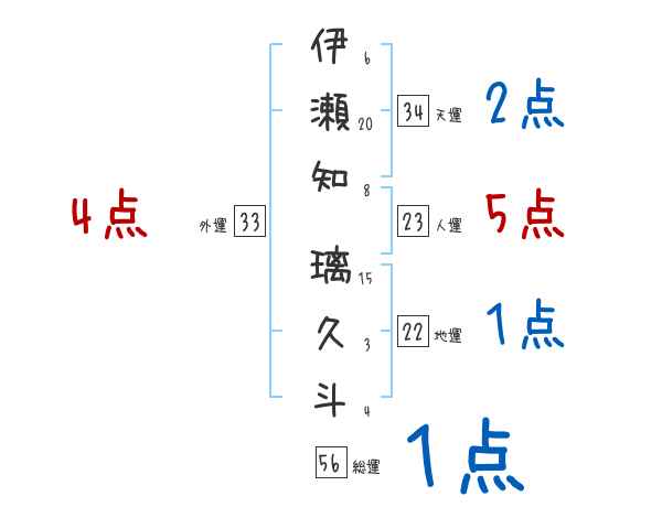 伊瀬知璃久斗さんの画数の鑑定結果