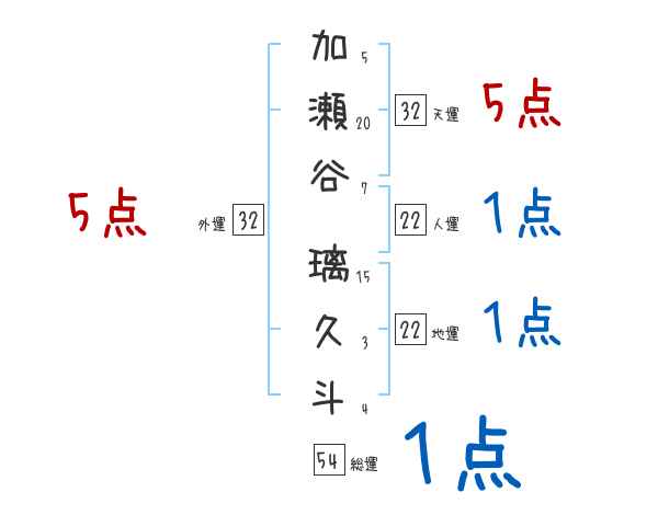 天運![]() | 加瀬谷璃久斗さんの天運は32画の5つ星!柔軟性があり成功する。チャンスが多く金運が良い。 家系が持つ宿命的な運勢を表します。祖先から受け継いだ苗字ですので自分の力が及びません。家柄を象徴します。 |