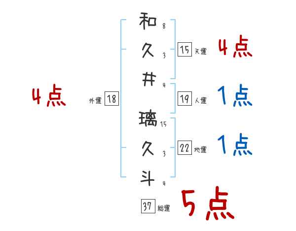 天運![]() | 和久井璃久斗さんの天運は15画の4つ星!人徳があり出世する。順調に物事を進め円満な人生。 家系が持つ宿命的な運勢を表します。祖先から受け継いだ苗字ですので自分の力が及びません。家柄を象徴します。 |