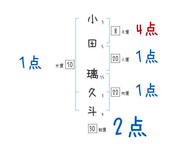小田璃久斗さんの画数の鑑定結果