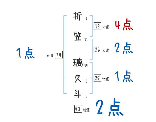天運![]() | 折笠璃久斗さんの天運は18画の4つ星!情熱的で剛気。忍耐力があり信頼される。 家系が持つ宿命的な運勢を表します。祖先から受け継いだ苗字ですので自分の力が及びません。家柄を象徴します。 |