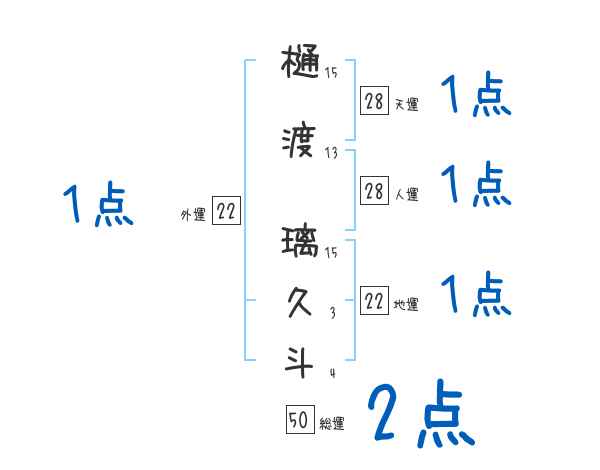 樋渡璃久斗さんの画数の鑑定結果