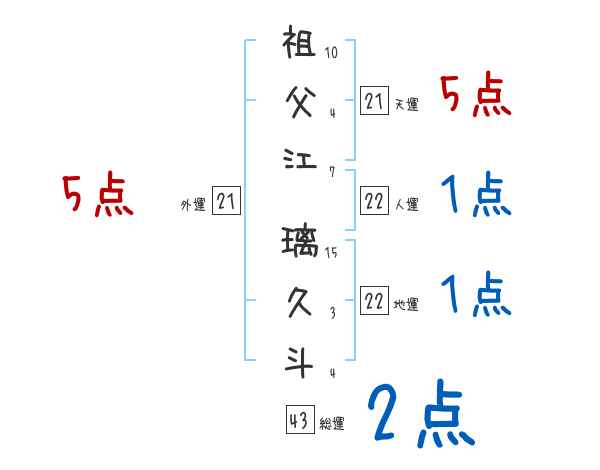 祖父江璃久斗さんの画数の鑑定結果