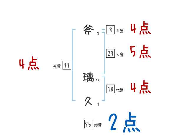 斧璃久さんの画数の鑑定結果