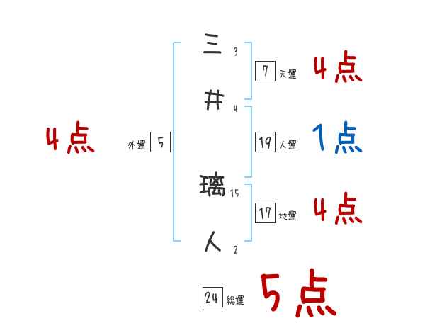 三井璃人さんの画数の鑑定結果