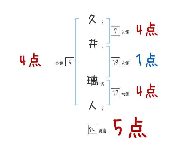 久井璃人さんの画数の鑑定結果