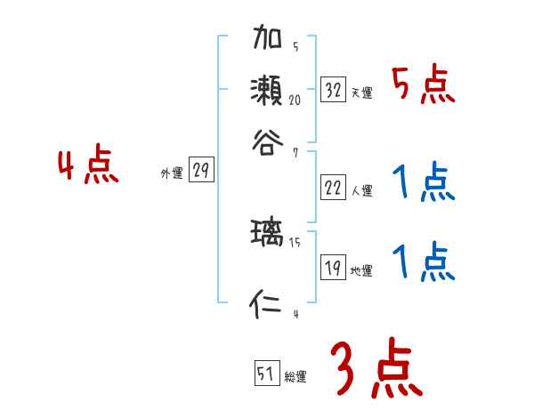 加瀬谷璃仁さんの画数の鑑定結果