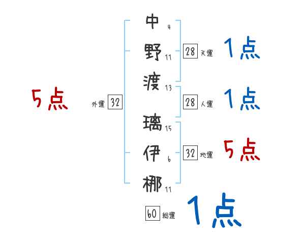 中野渡璃伊梛さんの画数の鑑定結果