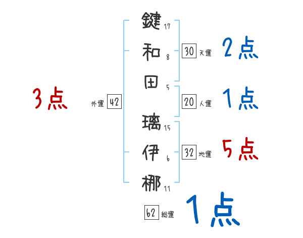 鍵和田璃伊梛さんの画数の鑑定結果