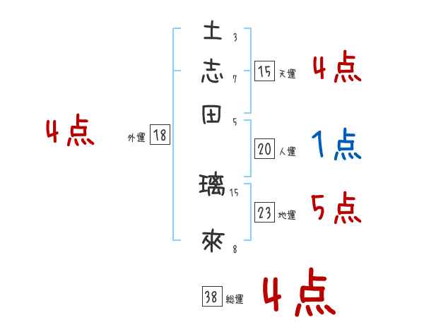 土志田璃來さんの画数の鑑定結果