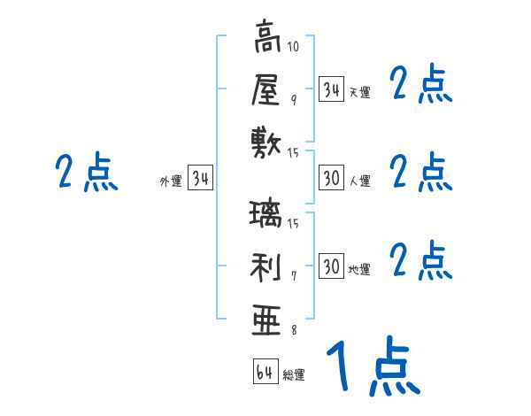 高屋敷璃利亜さんの画数の鑑定結果